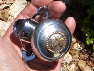Spinner Knob For Steering Wheel This knob is for an old, classic steering wheel that has thin spokes and is flat, not dished. It won't mount on a modern style wheel that has a fat rim and bulky spokes. It's NOS (new old stock) and is in perfect, never used condition. I'm A Big Wheel................................$38 |